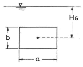 그림과 같은 직사각형 평면이 연직으로 서 있을 때 그 중심의 수심을 HG 라 하면 압력의 중심 위치(작용점)를 a, b, HG로 표현한 것으로 옳은 것은?