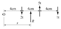 다음 그림과 같은 역계에서 작용하중의 합력(R)의 위치 x값은?