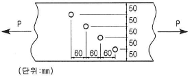 아래 그림과 같은 강판에서 순폭은? (단, 강판에서의 구멍 지름(d)은 25mm이다.)