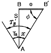 그림과 같이 A점에서 편심점 B′점을 시준하여 TB′를 관측했을 때 B점의방향각 TB를 구하기 위한 보정량 x의 크기를 구하는 식으로 옳은 것은?