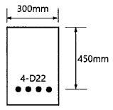 그림에 나타난 단철근 직사각형 보가 공칭 휨강도(Mn)에 도달할 때 압축 측 콘크리트가 부담하는 압축력은 약 얼마인가? (단, 철근 D22 4본의 단면적은 1548mm2, fck=28MPa, fy=350MPa이다.)