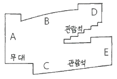 아래 그림은 오디토리엄의 단면도이다. 흡음력이 가장 큰 재료를 사용해야 할 위치는?