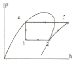 다음의 증기압축 냉동사이클의 압력(P)-엔탈피(h)선도에 관한 설명으로 옳지 않은 것은?(오류 신고가 접수된 문제입니다. 반드시 정답과 해설을 확인하시기 바랍니다.)