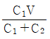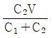 정전용량이 C1, C2인 두 콘덴서를 직렬로 연결한 회로에 전압 V를 인가할 경우 C1에 걸리는 전압은?