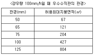 최대강우량 120mm/h의 지역에 있는 지붕의 수평투영면적이 1200m2인 건물에 4개의 우수수직관을 설치할 경우, 우수수직관의 관경은?