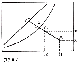다음의 습공기 선도상에서 공기의 상태점 A가 C로 변하는 상태변화를 무엇이라 하는가?