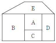 그림의 A, B, C , D, E 영역에 빨강, 주황, 노랑, 초록, 파랑의 가지 색을 칠하는 경우의 수는? (단, 같은 색을 여러 번 사용할 수 있으나 인접한 영역은 다른 색으로 칠한다.)