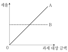 그림은 조세를 세율의 적용 방식에 따라 두 가지 유형 A와 B로 구분하여 나타낸 것이다. 이에 대한 설명으로 가장 적절한 것은?