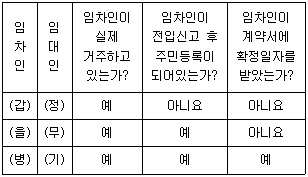 다음은 주택 임대차 계약을 체결한 (갑)~(기)의 상황을 나타낸 것이다. 이에 대한 설명으로 옳은 것은? (단, 자연인 (갑)~(병)은 등기를 하지 않았으며, 모든 임대차 계약은 일시사용을 위한 것이 아니다)