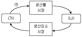민간 경제의 순환을 나타낸 다음 그림에 대한 설명으로 옳은 것은? (단, (가), (나)는 서로 다른 경제 주체를, 화살표는 실물 또는 화폐의 흐름을 표시한 것이다)