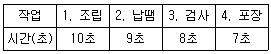 어느 회사의 컨베이어 라인에서 작업순서가 다음 표의 번호와 같이 구성되어 있을 때, 설명 중 맞는 것은?