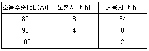 작업장의 소음 노출정도를 측정한 결과가 다음과 같다면 이 작업장 근로자의 소음노출지수는 얼마인가?