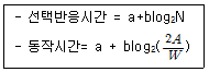 선택반응시간(Hick의 법칙)과 동작시간(Fitts의 법칙)의 공식에 대한 설명으로 옳은 것은?