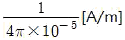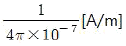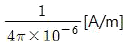 진공상태의 균등 자계에서 자속밀도가 1[Wb/m2]일 때 자계의 세기는?