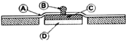 다음 그림은 일회용 금속판 전극(disposable electrode)을 나타낸 것이다. 그림에서 금속판 부분은?