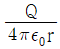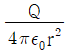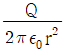 진공 중의 구 대전체에서 반경이 r(m)일 때 전하의 분포가 일정하다고 하면 전체 전하량이 Q(C)일 때, 구의 외부 전계(v/m)는? (단, ε0는 진공 중 유전율)