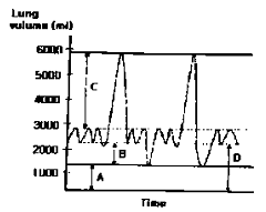 [그림]은 폐용적과 폐용량을 나타낸 그래프이다. [그림] 중 C가 가리키는 것은?