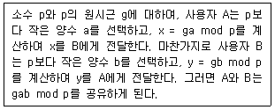 다음에 설명한 Diffie-Hellman 키 교환 프로토콜의 동작 과정에서 공격자가 알지 못하도록 반드시 비밀로 유지해야 할 정보만을 모두 고른 것은?