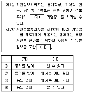 「개인정보 보호법」 제28조의2(가명정보의 처리 등)의 내용으로서 (가)와 (나)에 들어갈 용어를 바르게 연결한 것은?