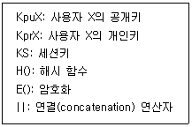 사용자 A가 사전에 비밀키를 공유하고 있지 않은 사용자 B에게 기밀성 보장이 요구되는 문서 M을 보내기 위한 메시지로 옳은 것은?