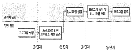 다음은 SUID 프로그램이 일반 권한에서 관리자 권한으로 상승하여 처리하는 정상적인 과정을 나타내고 있다. 심볼릭 링크를 이용한 레이스 컨디션 공격이 실행되는 단계는?