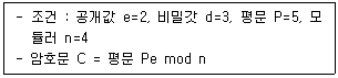 RSA 암호시스템에서 다음의 값을 이용한 암호문 C값은?