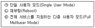 실행 레벨은 0부터 6까지 있는데 다음 지문의 빈칸 ㉠, ㉡, ㉢에 해당되는 실행 레벨로 알맞게 짝지어진 것은?