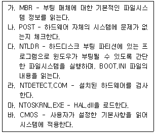 다음은 윈도우 부팅 순서이다. 올바르게 나열된 것은?
