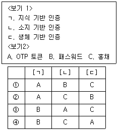다음에 제시된 <보기 1>의 사용자 인증방법과 <보기 2>의 사용자 인증도구를 바르게 연결한 것은?