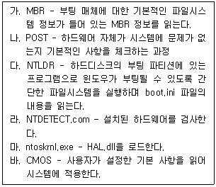다음은 윈도우 부팅 순서이다. 올바르게 나열된 것은?
