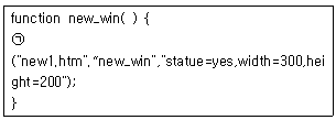 자바스크립트에서 너비 300픽셀에 높이 300픽셀이 되는 새 창을 띄우기 위해 ㉠에 윈도우 객체 메서드는?