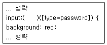 type 속성이 apssword가 아닐 경우 백그라운드 속성에 red 값을 적용하기 위한 HTML5 코드로 ( )에 맞는 것은?