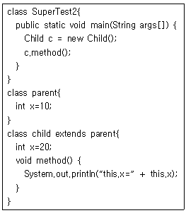 객체지향 언어인 자바에서 다음 코드의 결과 값은?