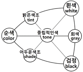 아래 그림(Color Triangle)에 나타난 조화론에 대한 설명으로 거리가 먼 것은?