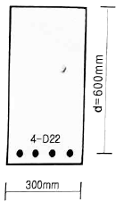 그림과 같은 직사각형 단근보를 설계할 때 콘크리트의 등가응력블록의 깊이 a는 약 얼마인가? (단, D22철근 1개의 단면적은 387mm2 , fck=24MPa, fy=400MPa)
