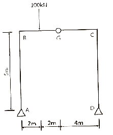 그림과 같은 3힌지 라멘의 수평반력을 구하면?