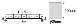 그림과 같은 단순보에 생기는 최대 휨응력도의 값은?