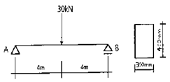 그림과 같은 목재보의 최대 처짐은? (단, =10,000MPa이고 자중은 무시한다.)