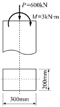 다음 기둥단면에서 발생하는 최대응력도의 크기는?