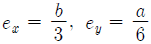 다음 그림은 단면의 핵을 표시한 것이다. ex, ey의 값으로 옳은 것은?