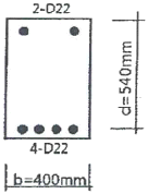 다음 그림은 철근콘크리트 보 단부의 단면이다. 복근비와 인장 철근비는? (단, D22 1개의 단면적은 387mm2임)