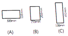 그림과 같은 동일 단면적을 가진 A,B,C 보의 휨 강도비(A:B:D)를 구하면?