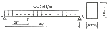 다음 그림과 같은 단순보에서 C점에 대한 휨응력은?
