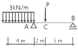 C점의 전단력이 0이 되려면 P의 값은 얼마가 되어야 하는가?