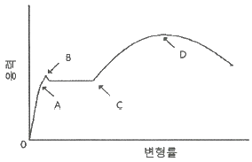 다음은 철근인장실험 결과 나타난 철근의 응력-변형률 곡선을 나타내고 있다. 철근의 인장 강도에 해당하는 것은?