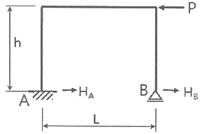 그림과 같은 1차 부정정 라멘에서 A점 및 B점의 수평반력의 크기로 옳은 것은?