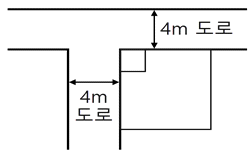그림과 같은 대지조건에서 도로 모퉁이에서의 건축선에 의한 공제 면적은?