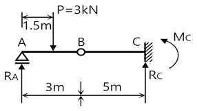 다음 그림과 같은 구조물에서 C점에서의 반력은?