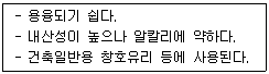 다음과 같은 특징을 갖는 유리의 성분에 따른 종류는?