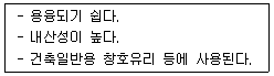 다음과 같은 특징을 갖는 성분별 유리의 종류는?